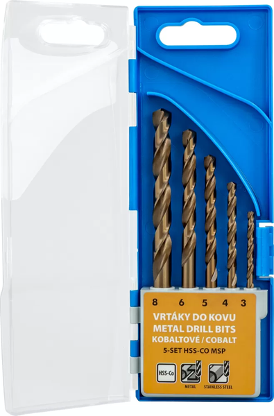 - rychlořezná ocel s 5% příměsí kobaltu dobře vede teplo a díky tomu vrtáky snáze odolávají většímu zatížení