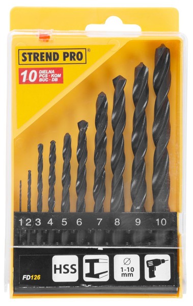 Sada vrtaček Strend Pro by neměla chybět ve výbavě profesionálních řemeslníků, ale ani kutilů. Je vhodná pro vrtání do kovu. desetidílná 1-2-3-4-5-5-6-7-8-9-9-10 mm