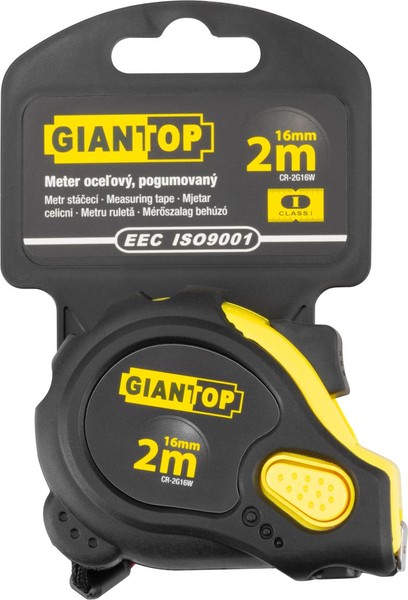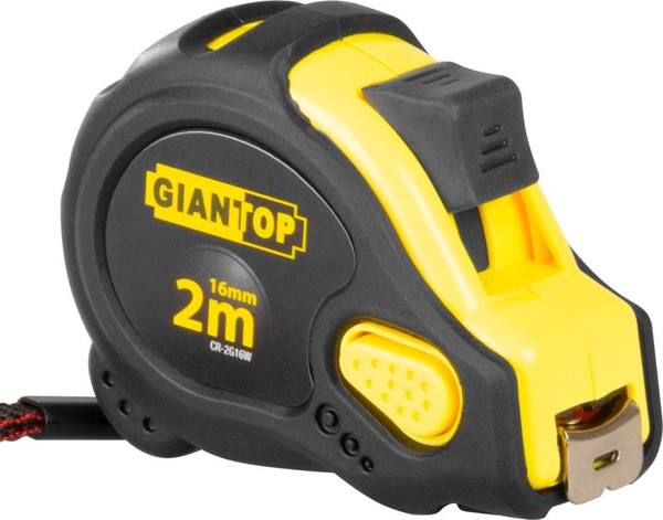 Klešťový měřič GIANT by neměl chybět ve výbavě profesionálních řemeslníků, ale ani kutilů. Tento pohodlný svinovací metr z vysoce pružné oceli je vybaven praktickou sponou na opasek a poutkem. Metr je vybaven brzdou. Pouzdro metru je vyrobeno z odolného plastu a potaženo gumou. Má kompaktní tělo a posuvný háček. Jeho délka je 2 m a šířka pásu je 16 mm. Je vhodný pro měření v interiéru i exteriéru.