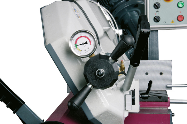 Poloautomatická pásová pila s plynulou změnou rychlosti v masivním litinovém provedení.- Těžké, průmyslové provedení