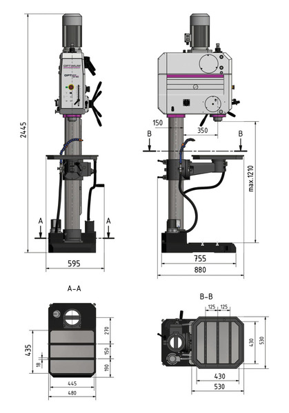 | Max. vzdálenost vřetene a základny | 1210 mm |
