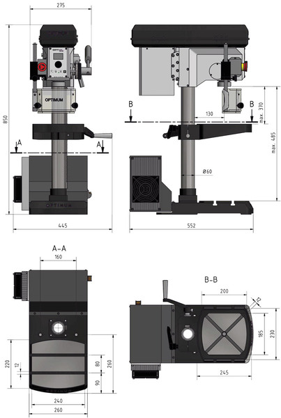 | Max. vzdálenost vřetene a základny | 485 mm |
