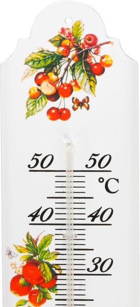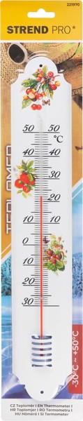Venkovní teploměr Strend Pro s lidovým motivem měří teplotu od 50 °C do -30 °C. Rozměry: 500x90x15 mm.