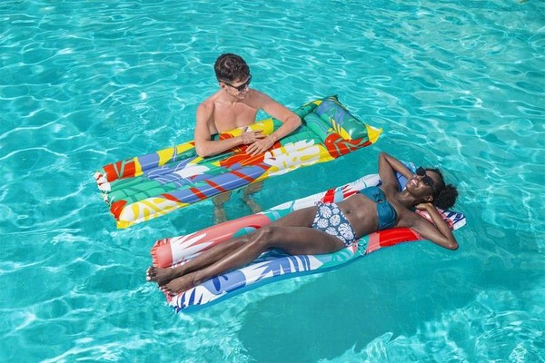 Plážový nafukovací vak s pohodlným polštářem je nezbytnou výbavou pro léto u bazénu nebo na pláži. Nafukovačka o rozměrech 183 x 69 cm má elegantní botanický design. Opěrka hlavy má dvě vzduchové komory, které zajišťují přirozený polštářový efekt. Vyberte si ze 2 různých barev. Odolný vinylový materiál je testován a navržen tak, aby dlouho vydržel. Bezpečnostní ventily usnadňují nafukování/vyfukování a zajišťují větší bezpečnost.