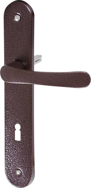 Klika MagicHome Manuela je vhodná pro interiérové dveře. Štít je oválný a je zakončen tepáním. Součástí balení jsou samořezné šrouby. Délka kliky: 115 mm Výška: 230 mm Šířka: 40 mm