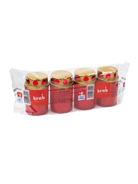 Svíčka hřbitovní 45g s víčkem, červená 4ks