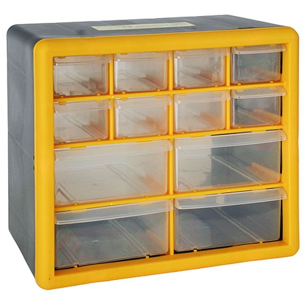 Nástěnný organizér Strend Pro by neměl chybět ve vaší dílně. Díky 12 zásuvkám poskytuje praktické a přehledné uložení šroubků, matic, podložek a podobného materiálu. Je vyroben z PVC a má maximální nosnost 12 kg. Jeho rozměry jsou 26,5x16x23,5 cm