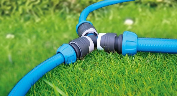 Vysoce kvalitní spojka pro spojení tří hadic s moderním designem a odolnou konstrukcí - s protiskluzovým gumovým povrchem pro snadnou manipulaci