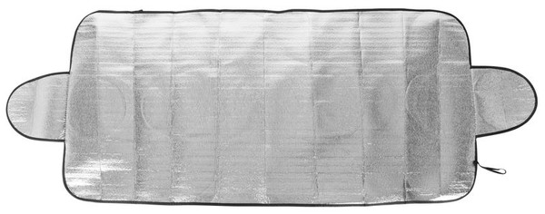 Zástěna čelního skla automobilu 85x180 cm, s přesahy, pro dodávky, Alu. Pomocník, který by neměl chybět ve výbavě vašeho vozu, ať už v létě nebo v zimě. Alu fólie chrání sklo před sluncem i mrazem. Fólie přesahuje po stranách pro připevnění na zpětná zrcátka , pro bezpečnost před větrem ji lze umístit i na vnější stranu skla.